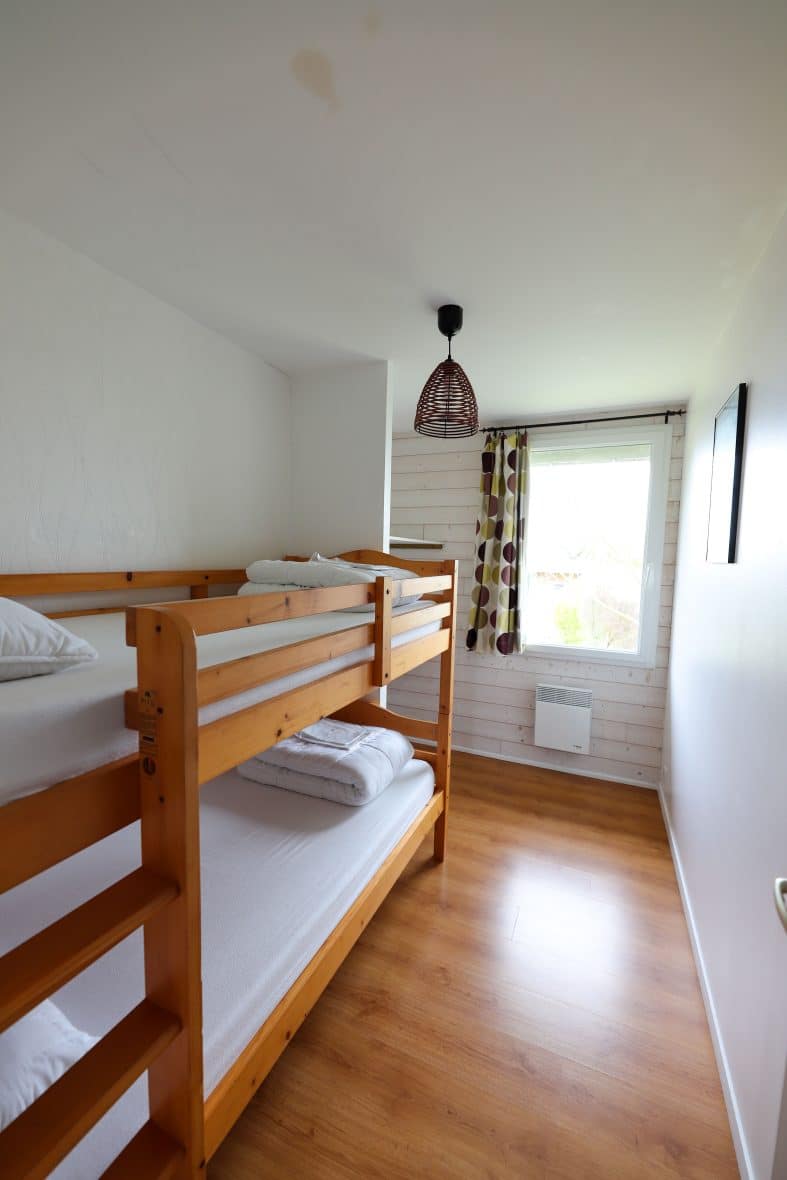 - 2 pièces: a 11 m² room with a king size double bed 160 * 200 and a little room (7 m²) with a bunkbed 90 * 200. Each room have a cupboard.