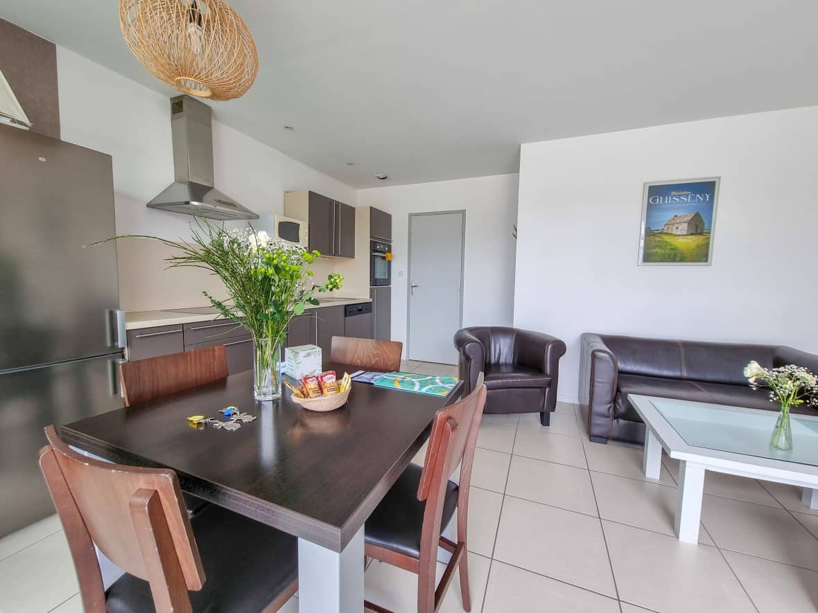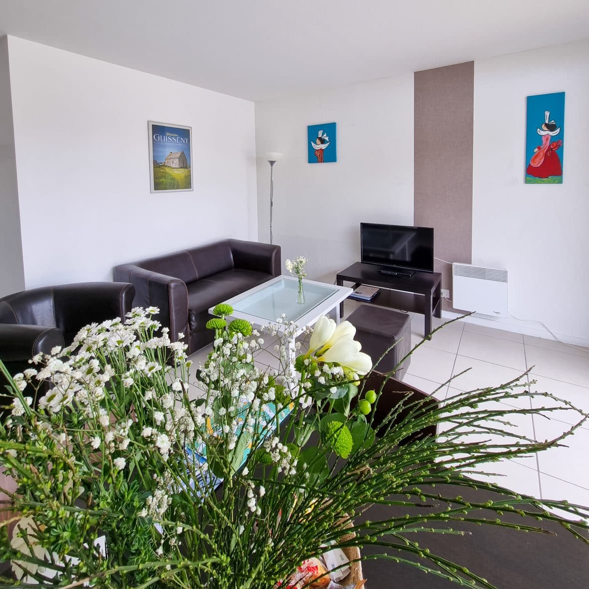 - Confortable livingroom equiped with a table and 4 chairs, sofa, TV 21 pouces with integrate TNT, a lttle table. A very big window illuminate the livingroom.